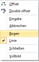 5.Polylinien können aus Bögen und Linien bestehen. Umschalten zwischen den Abschnittstypen ist mit dem Popup-Menü möglich, das durch den Klick mit der rechten Maustaste geöffnet wird.