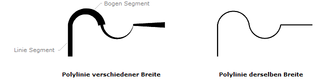 Eine Polylinie kann aus Linien- und Bogen-Segmenten bestehen, aber alle diese Segmente sind ein einzelnes Objekt. Jedes Segment kann seine Breite haben.
