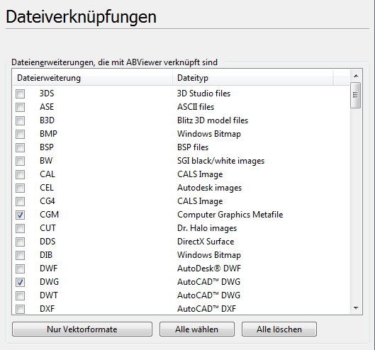 •Nur Vektorformate. Diese Option verknüpft nur CAD Dateien der unterstützten Formate mit Fluchtplan Creator.