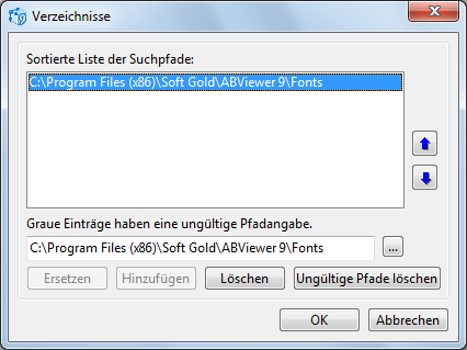 - Button können Sie alle ungültigen (hellgrau gekennzeichneten) Pfade aus der Pfadliste entfernen, selbst wenn sie nicht ausgewählt sind.