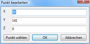 Geben Sie die entsprechenden Koordinaten ein und drücken Sie OK oder drücken Sie auf Punkt wählen. Dann werden die beiden Dialogfenster verschwinden. Wählen Sie den Punkt mit dem linken Mausklicken.