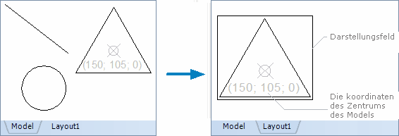 Die Koordinaten des Zentrums der Darstellung des Models im Darstellungsfeld.