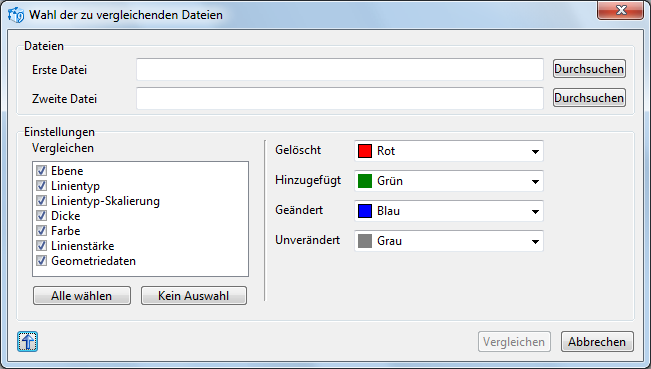 Ein Klick auf den Button "Dateien vergleichen" ruft die Dialogboxe "Wahl der zu vergleichenden Dateien" auf.