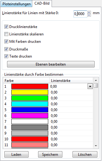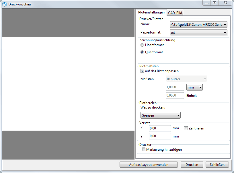 Der Tab "CAD Bild" bestimmt die Druckeinstellungen für die CAD - Format - Dateien