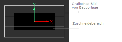 7. Ändern Sie die Größe des Zuschneidebereichs im Fenster Vorlageneigenschaften, z.B. geben Sie den Wert 0,35 in das Feld Breite und den Wert 0,810 in das Feld Länge ein und klicken Sie auf die Schaltfläche Übernehmen. Der schwarze Zuschneidebereich wird im Ansichtsbereich im Ergebnis verkleinert: