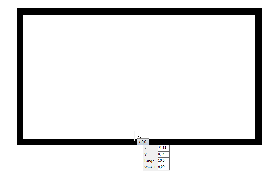 8. Ziehen Sie die Innenwand zu gegenüberliegender äußeren Wand. Wenn ein Normal-Fangpunkt angezeigt wird, klicken Sie auf die linke Maustaste, um die Wanderstellung zu vollenden. Die erstellte Wand muss mit den äußeren Wänden bündig abschließen: